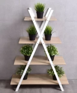 Costway 4-Tier Bookshelf Storage Display Shelves Bookcase Ladder X-Shape Brown/Black