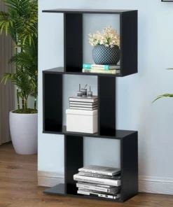 Costway 3-tier S-Shaped Bookcase Free Standing Storage Rack Wooden Display Decor Black
