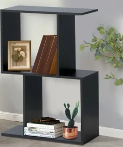 Costway 2-tier S-Shaped Bookcase Free Standing Storage Rack Wooden Display Decor Black