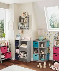 5pc Kids’ Corner Cabinet Set with 4 Bins Set – RiverRidge Home Gray/turquoise/aqua