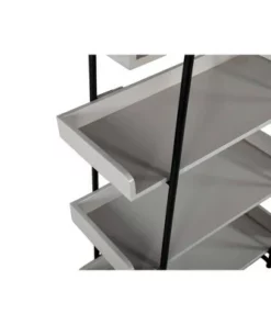 74" 6 Tier Wooden Ladder Storage Bookshelf with Metal Frame Gray/Black – The Urban Port