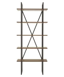 Nathyn 5 Shelf X Back Metal Post Bookshelf – Inspire Q Walnut Brown