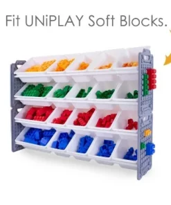 UNiPLAY Toy Organizer With 20 Removable Storage Bins and Block Play Panel, Multi-Size Bin Organizer