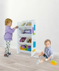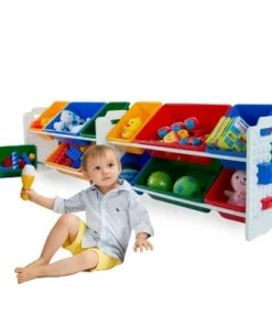 UNiPLAY Toy Organizer With 12 Removable Storage Bins and Block Play Panel, Multi-Size Bin Organizer