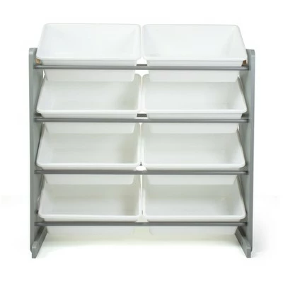 Playtime becomes more fun when your kids can easily take out their toys, books and games and then quickly clean up afterwards. The space-saving Humble Crew Toy Storage Organizer with 8 Large Storage Bins, stows your children’s toys in easy-to-see, easy-to-access BPA and phthalate free plastic storage bins. 8 large white storage containers are easy to remove, replace and reposition along the 4 tiered organizer shelves. Storage bins are sized just right within the toy organizer for toddlers and preschool aged children. Sturdy engineered wood construction frame with stabilizing braces, anti-tip straps, steel shelving rods, 20 pound weight capacity per level. Some assembly is required. A great toy storage box alternative; helping keep your little one’s room clean and organized while at the same time teaching sorting and cognitive skills. Perfect organizational solution for bedrooms, playrooms, classrooms and bathrooms.