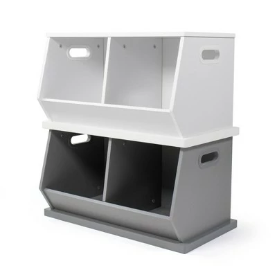 - Bins can be safely stacked up to 2 bins high or placed side by side. Each bin can hold up to 50 lbs. Each unit sold separately.